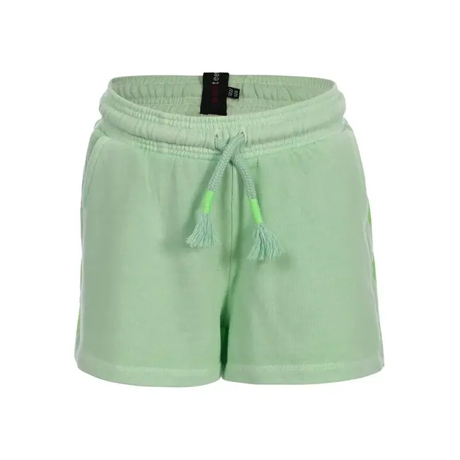 Cool short in een uni licht groene kleur die perfect matcht in deze drop. Garment dye wassing. Elastische tailleband. Korte lengte. Regular fit. Comfy jersey sweat kwaliteit. Steekzakjes. Groene geborduurde schelpen aan de zijkant.