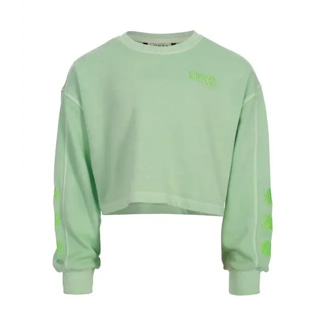 Cool vibes in deze loose fit sweater. Uni licht groene kleur, easy to mix and match in deze drop. Iets cropped fit met een rechte onderkant voor een coole uitstraling. Lange mouw en een fancy borduur. Comfy katoenen sweat jersey kwaliteit