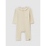 Romper van geribbelde jersey van biologisch en gerecycled katoen met een geborduurde kraag met ruches. Functioneel voorzakje. Traanvormige opening aan de achterkant en drukknopen tussen de pijpen.