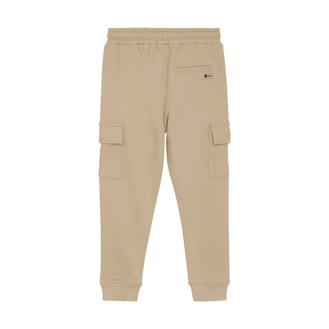 Coole cargobroek van Daily7Kids. De broek heeft twee zakken aan de zijkanten, een nepzak op de achterkant en twee cargozakken met klittenbandsluiting op de pijpen, wat zorgt voor een stoere look.