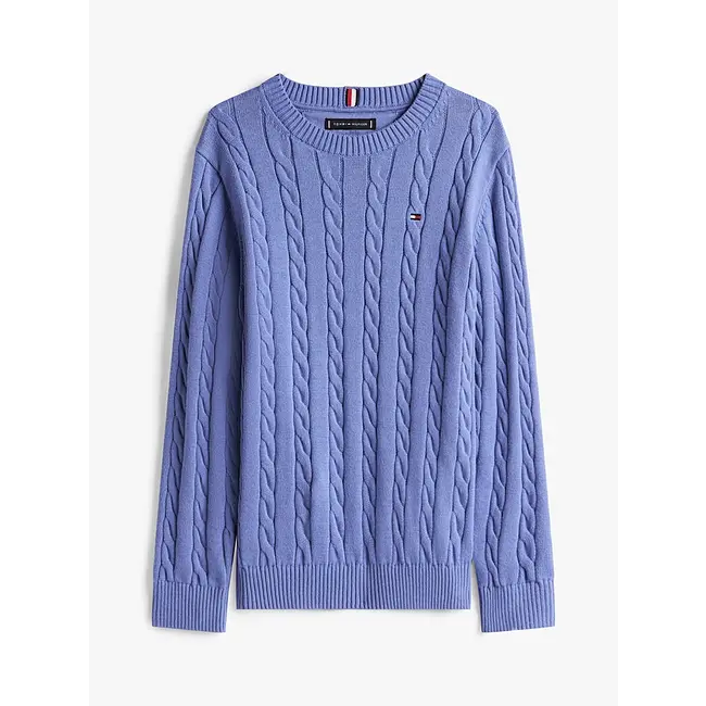 Deze trui is geschikt voor zowel casual als nette gelegenheden, of zelfs voor een wandeling naar school, met zijn klassieke ronde hals en kabelgebreide details.