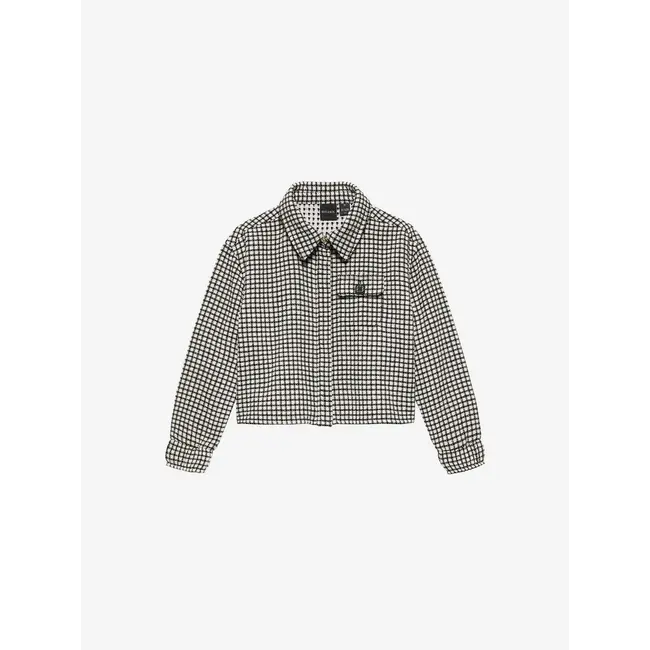 Kort, geruit jack van wolmix met een subtiel doorgeweven glitterdraad, een kraag en een knoopsluiting. Het jack is voorzien van een borstzakje en een wijde pasvorm.