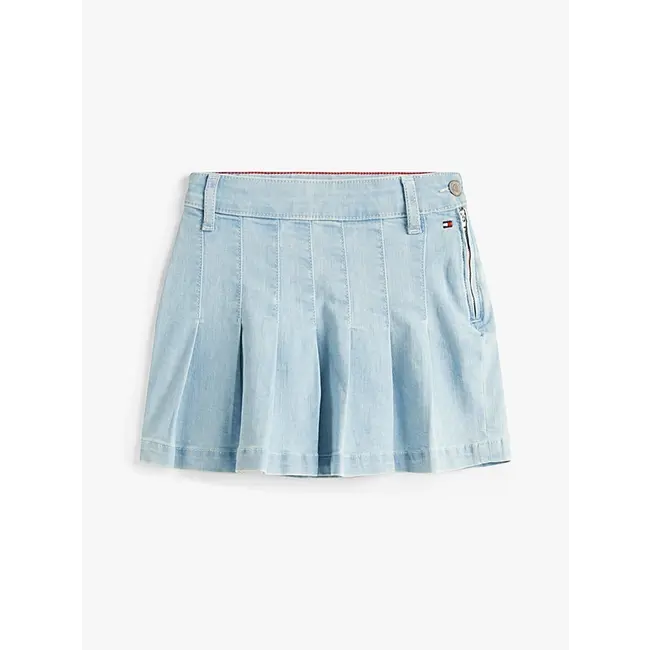 Geef zomerse looks een cute en klassieke touch met deze denim rok met een geborduurde Tommy Hilfiger-vlag en nette plooien.