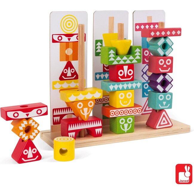 Leerspeelgoed van de serie I Wood: kleuren en vormen combineren. FSC-gecertificeerd. Waterverf. Geschikt voor kinderen van 3 tot 6 jaar. 52 stukjes om mee te stapelen.
