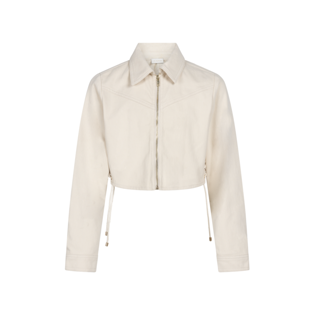 De Judith-jas is een kort ontwerp gemaakt van een stevige maar zachte stof met een strakke afwerking. De rits aan de voorkant en het zijkant-veterdetail geven een speels accent, terwijl de rechte kraag het een klassiek gevoel geeft. Combineer het met de Daira-top en Ramona-broek voor een verfijnde maar comfortabele look.