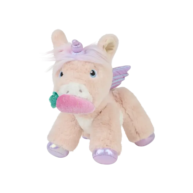 In een schattige roze tint is Shimmer klaar om te stralen en te verrassen! Deze pluche eenhoorn is er om een vleugje magie toe te voegen aan de wereld van je kleintje. Met een zachte magnetische mond kan Shimmer knabbelen aan een fluwelen wortel of een van onze kleine baby-eenhoorns meenemen op een ritje – hoe slim!