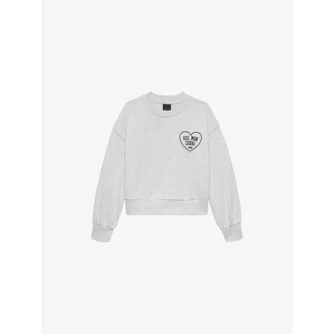 Gemêleerde sweater met een ronde hals, geribde boorden en een logo detail. De sweater heeft een normale pasvorm.