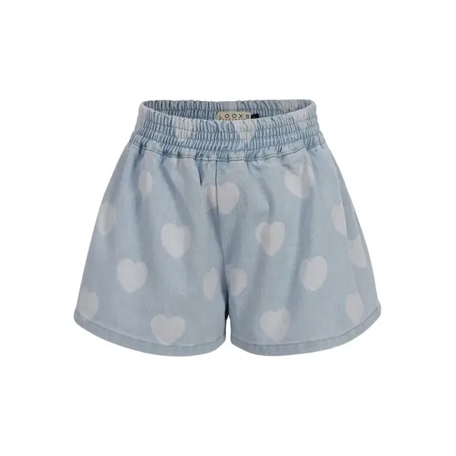 You gotta Love this Fabulous Style!! Te gekke short in een denim stof met een washed look. Twinning item met denim LXS voor mama! All over hartjes dessin / overige print. Loose fit shape. Korte lengte. Elastische tailleband.