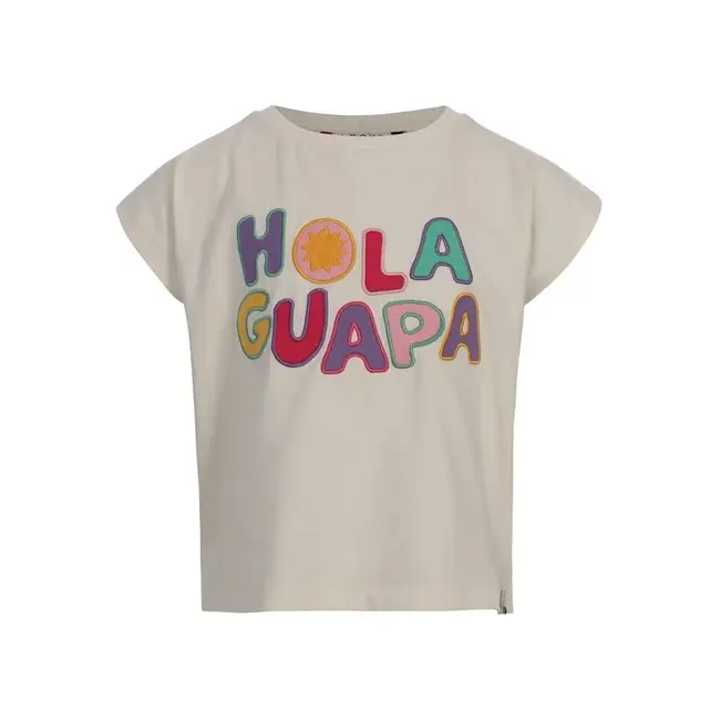 Hola Guapa!Loose fit en cropped fit.Offwhite kleur met een te gek kleurrijk artwork op de borst.Korte mouw.Ronde hals.Zachte katoenen jersey.