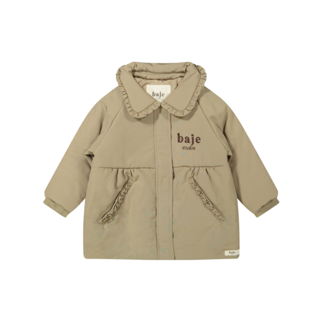 Winterjas meisjes – bruin & zand – met ruffle kraag Deze winterjas voor meisjes van Baje Studio is een echte eyecatcher en hét statement item van de collectie. De jas is uitgevoerd in een warme bruine tint en ook verkrijgbaar in zacht zand, waardoor je altijd een kleur vindt die bij jouw stijl past. Wat deze jas zo uniek maakt, is de elegante ruffle kraag die zorgt voor een speelse en toch chique uitstraling. De comfortabele pasvorm, stevige knoopsluiting en zachte voering maken de jas niet alleen mooi, maar ook praktisch en warm voor de koude winterdagen. ✔ Stijlvolle winterjas voor meisjes ✔ Verkrijgbaar in bruin en zand ✔ Unieke ruffle kraag als echte eyecatcher ✔ Warm, comfortabel en perfect voor de winter ✔ Typisch Baje: elegantie en draagcomfort in één