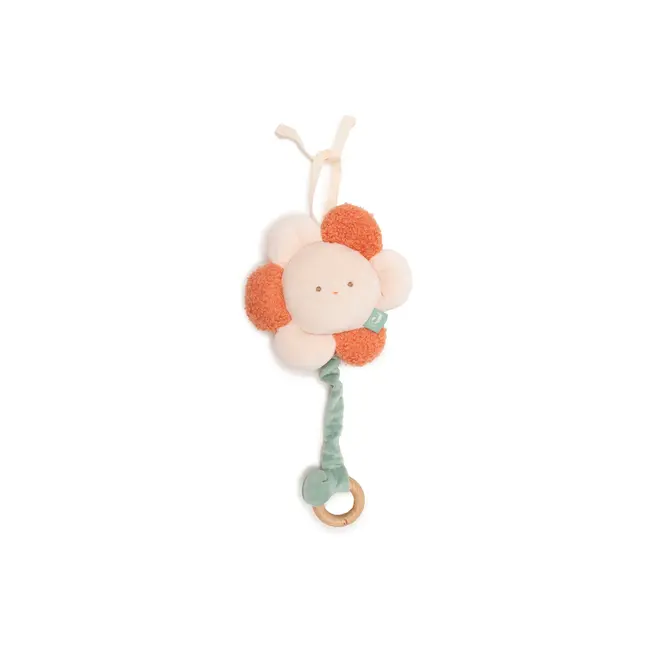 Laat je kleintje wegdromen met onze schattige Flower muziekhanger uit het Pretty Picnic thema. Het zachte bloemetje van bouclé en velvet met een houten ring aan het koordje brengt rustgevende Shubert’s lullaby tot leven. De perfecte toevoeging om je baby in slaap te wiegen met een vleugje zachtheid en het prachtige deuntje.