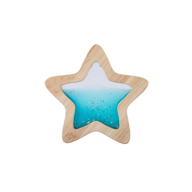 Een klein stukje van de melkweg binnen handbereik! Alle magie van onze flessen, nu stervormig, met een beukenhouten frame, ideaal voor de handjes van de allerkleinsten. De sterren zijn gevuld met kleurrijke en fluorescerende vloeistoffen met glitter die oplichten in het donker. Wanneer je de ster schudt, wordt je fantasie geprikkeld.