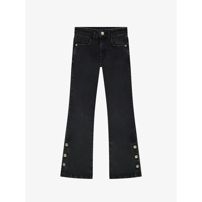 Flared jeans met een hoge taille, een rits- en knoopsluiting en knoopdetails aan de onderkant. De jeans is voorzien van zakken.