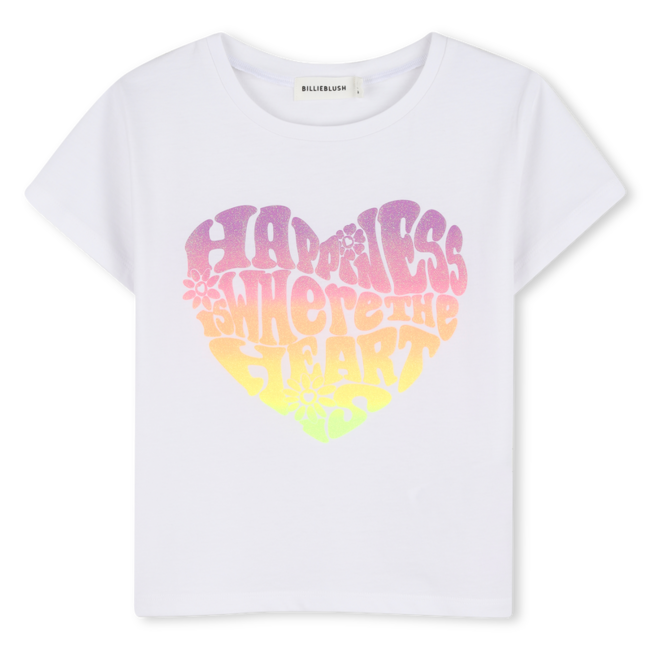 Voortreffelijk, dit zachte jersey T-shirt nodigt zichzelf uit in het dagelijks leven van kleine meisjes met een glitterillustratie die bij elke beweging het licht vangt. De comfortabele vorm en korte mouwen laten volop ruimte voor avonturen en knuffels.