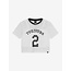 Cropped T-shirt van Indian Blue Jeans. Het T-shirt is gemaakt van kant en heeft een print op de voorkant. Het heeft ook een V-hals in een contrasterende kleur.