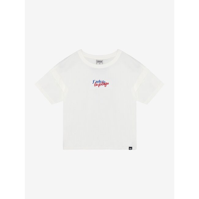 T-shirt van Indian Blue Jeans. Het t-shirt heeft een print op de borst en de rug. Het heeft ook elastiek aan de zoom en een dubbele laag bij de schouders. Gemaakt van gecertificeerd biologisch katoen. Gecertificeerd volgens GOTS - biologisch CERES-0366
