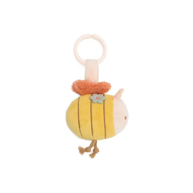 Hoe lief is deze wagenhanger uit het Pretty Picnic thema! Het schattige bijtje heeft speelse details en een geborduurd gezichtje. Binnenin zit knisperpapier en ook een klein belletje verstopt, waardoor het bijtje nóg leuker wordt om mee te spelen. Dankzij de handige ring bevestig je hem gemakkelijk aan de kinderwagen, zodat je kleintje onderweg altijd iets leuks te ontdekken heeft.